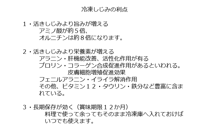 ・しじみに霜が多く付着している時は、霜を取り除いてください。